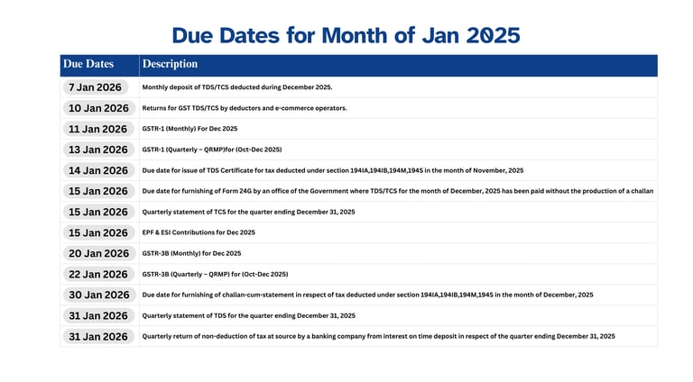 New TDS/TCS thresholds apply (e.g., Rs. 50,000 p.a. for 194J, Rs. 20,000 p.a. for 194H & Threshold for 194I, rent is now 50,000 pm. ).
