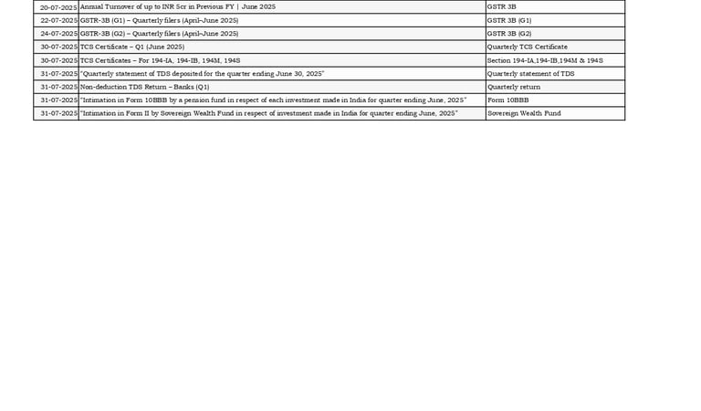 Due Dates for Month of July 2025